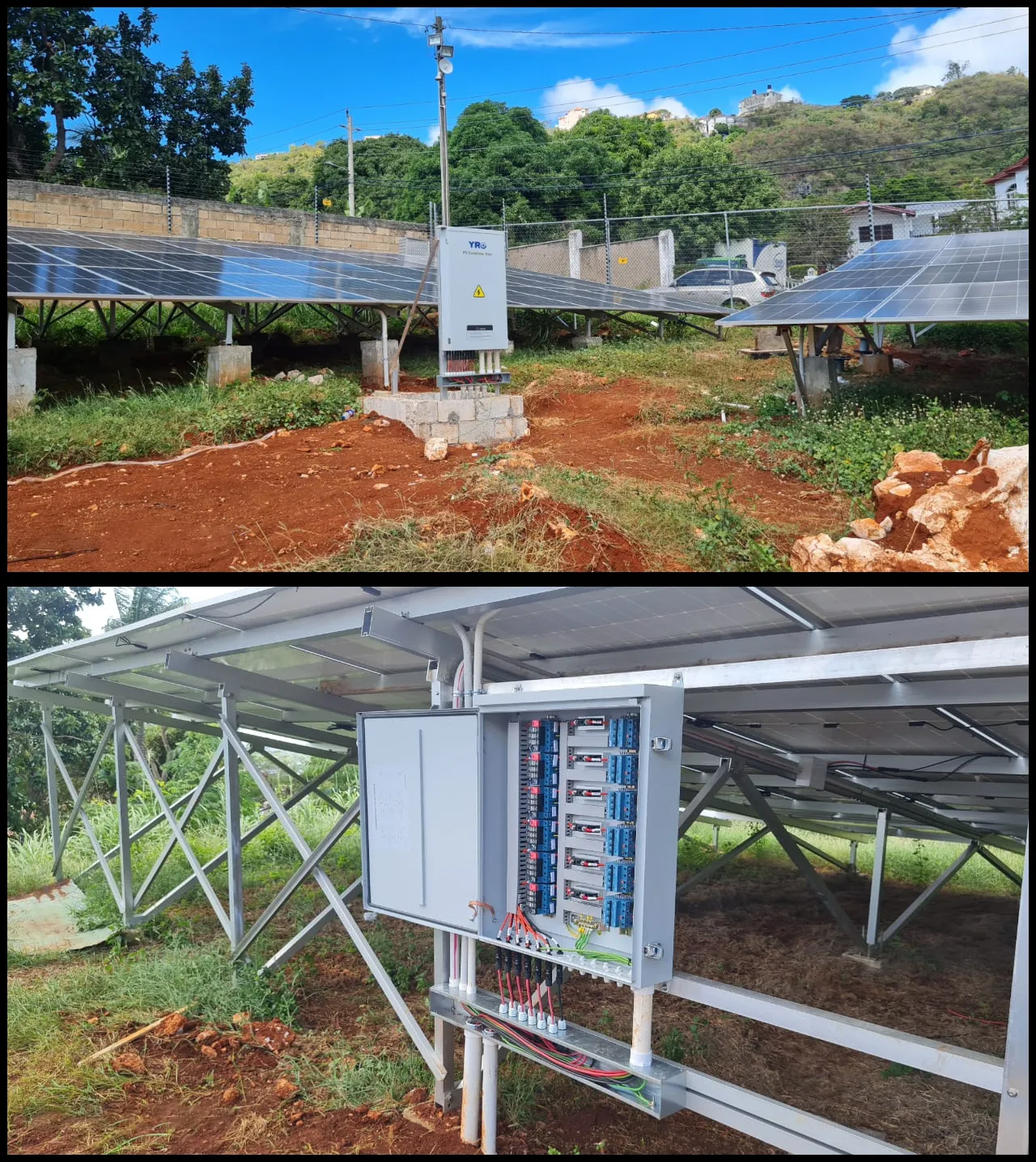 Förutom enheten för snabb avstängning av solenergi, gav kunder från Jamaica feedback om användningen avYRO solelfördelningslådor. Enligt bilderna från denna kund har produkten följande funktioner: